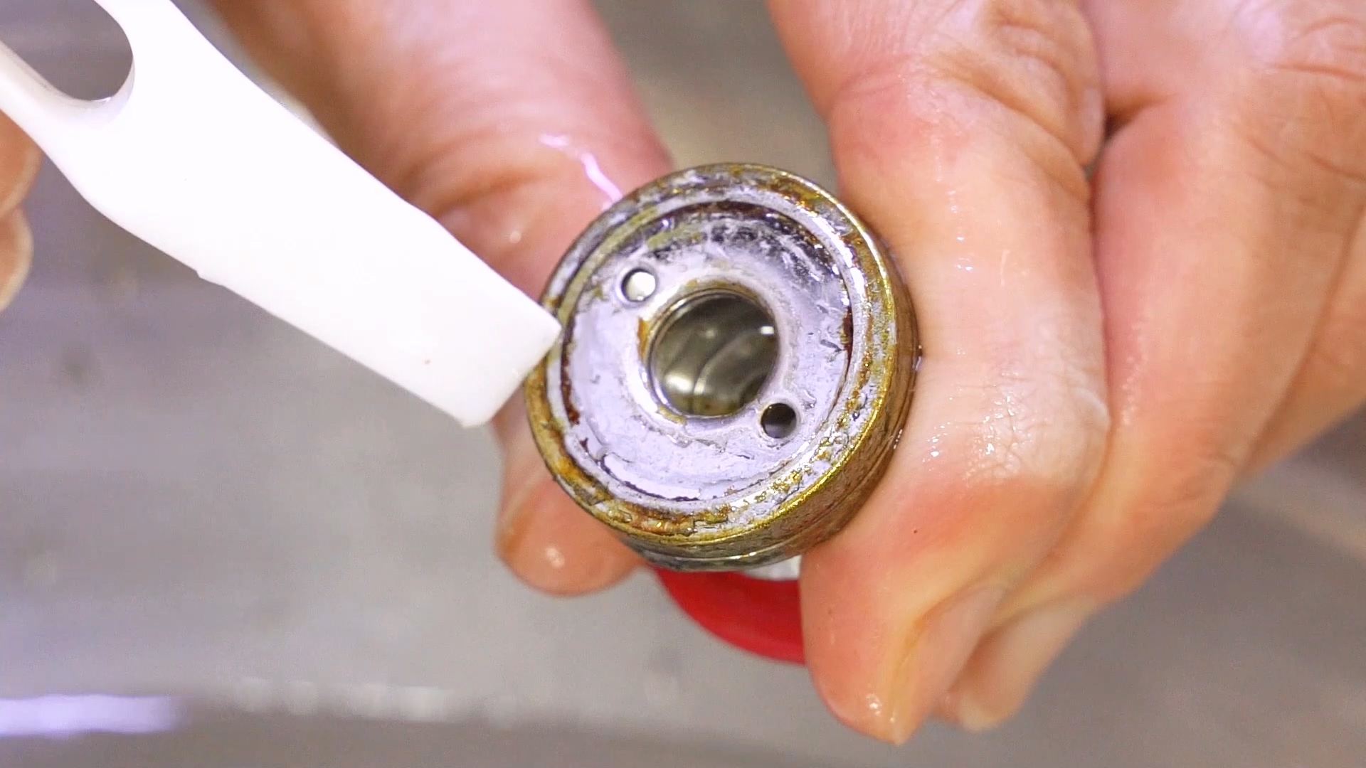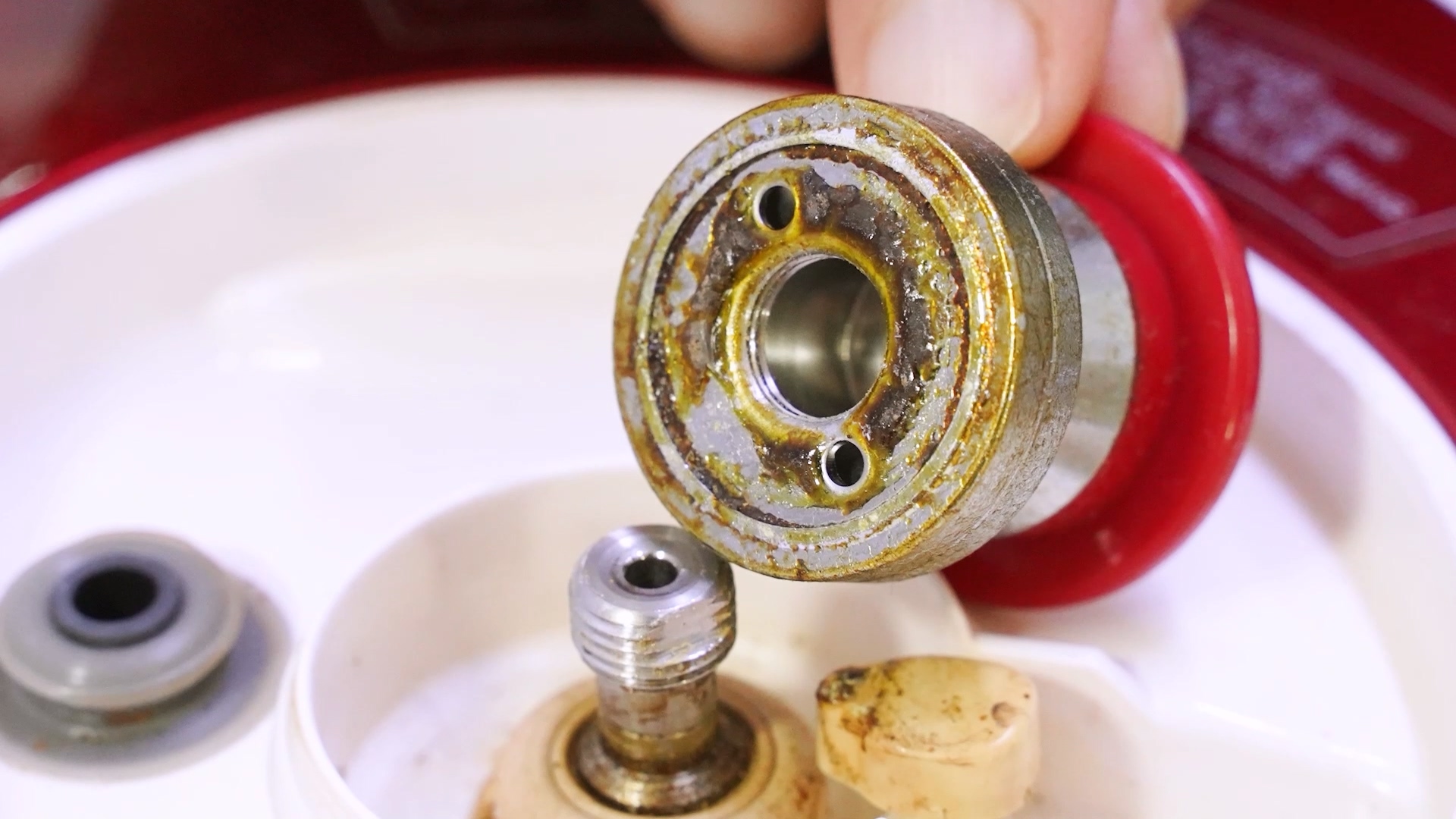 특히 압력추 부분을 보면 이렇게 찌든때가 눌어붙어 정말 더러워진 것을 볼 수 있어요. 이 부분이 막히지 않게 잘 닦아 주어야 해요.