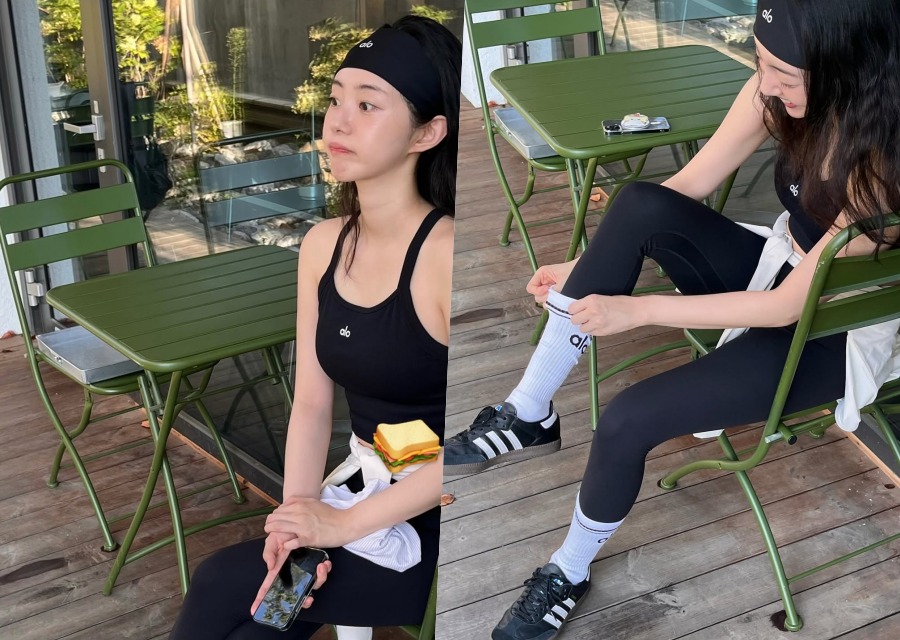 내추럴한 민낯에도 또렷한 이목구비와 청순한 매력이 돋보이며, 운동 후 휴식을 즐기는 듯한 자연스러운 모습이 팬들의 시선을 사로잡았다.