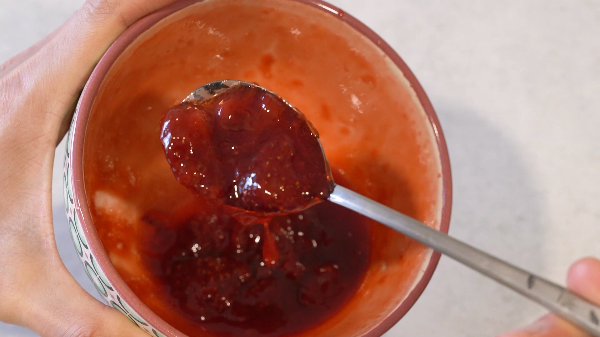 그러면 약 5분만에 바로 딸기잼 완성! 딸기잼이 따듯할 땐 농도가 질척일 수 있어요. 하지만 온도가 차가워지면 일반 딸기잼과 같은 농도가 된답니다.