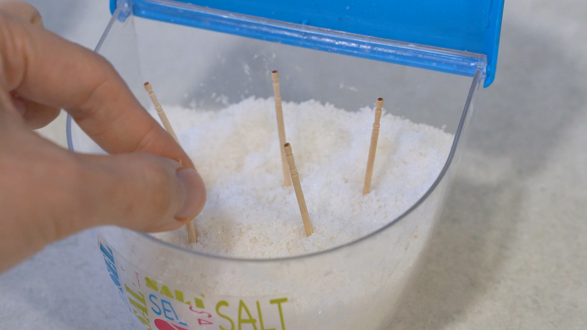 그럴땐 이쑤시개를 준비해서 적당하게 꽂아 두세요. 그러면 조미료가 수분을 머금어 굳는 현상을 이쑤시개가 방지해 주기 때문에 편하게 사용 가능하답니다.