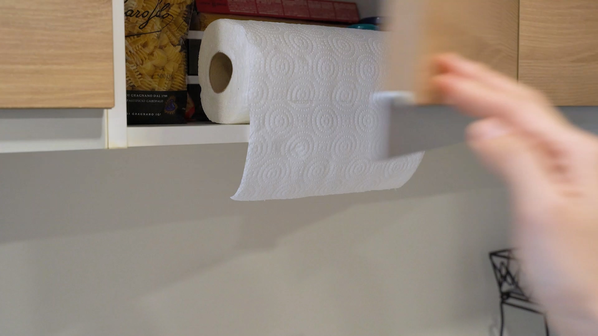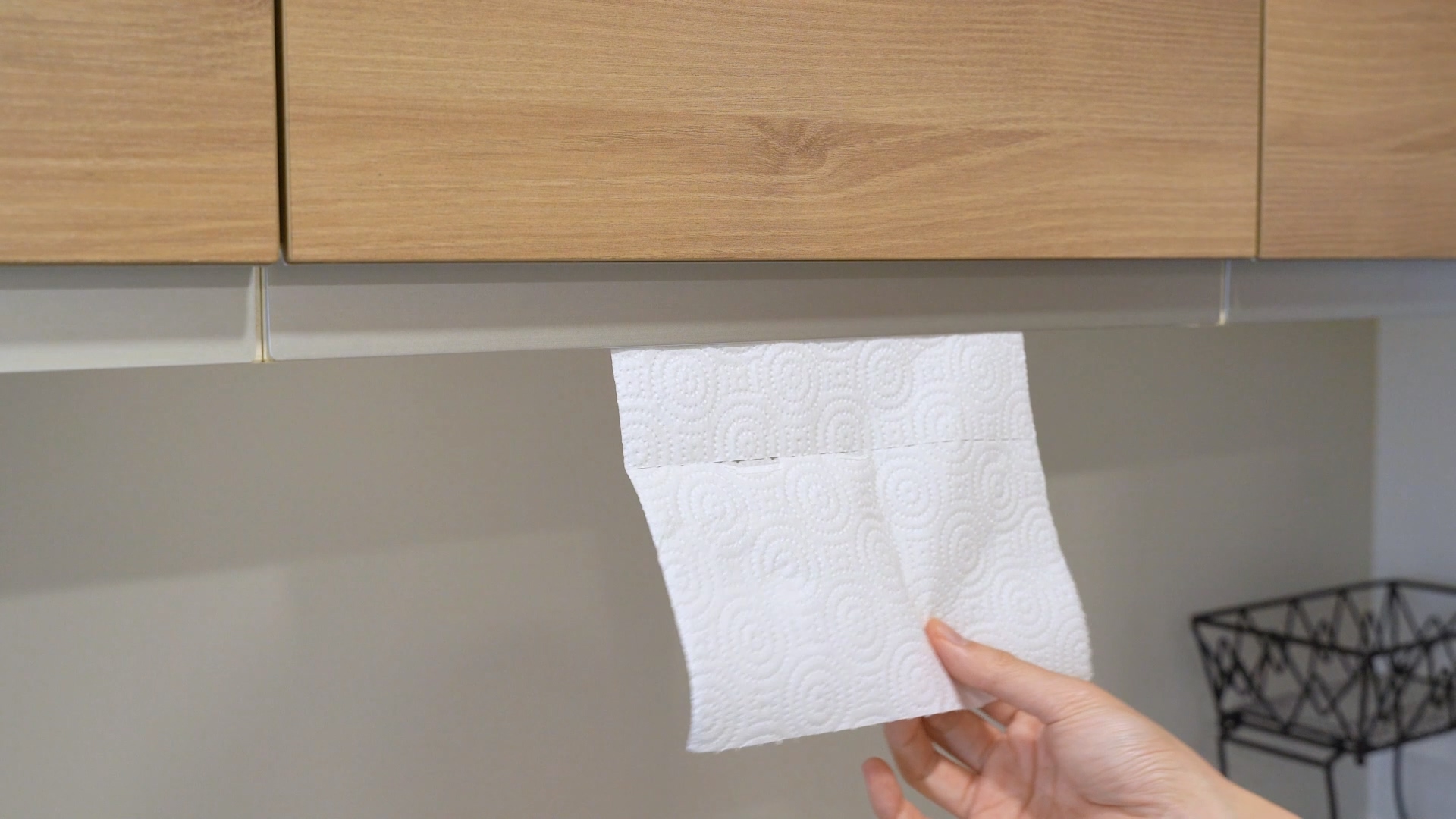 이제는 자주 사용하는 위치의 상부장에 키친타올을 넣은 후 닫아 보세요.