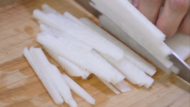 대파는 어슷하게 무 채썰어 주세요.