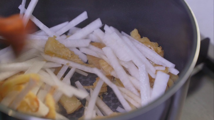 무를 넣고 1분 정도 지나면