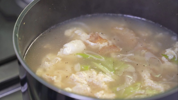 1분 정도 후 불을 끄세요. 기호에 따라 후추를 넣어 드시면 맛있게 드실 수 있어요.