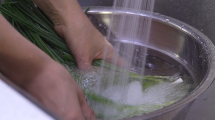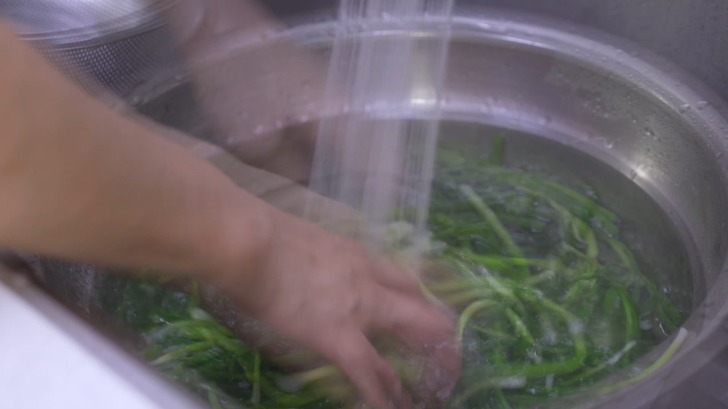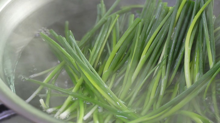 팔팔 끓는 물에 뿌리 부분부터 넣은 뒤 15초 정도만 데치세요.