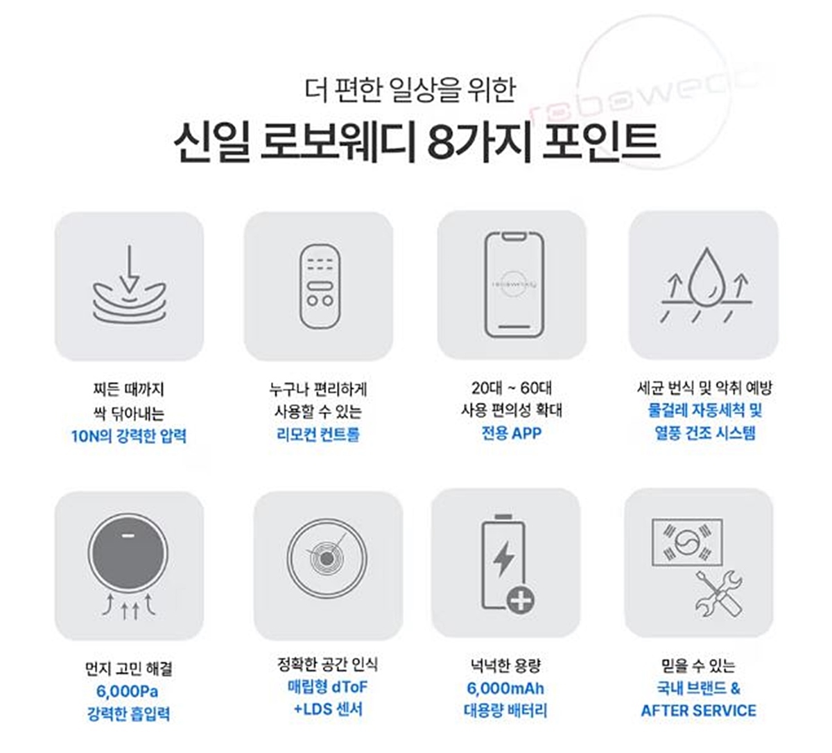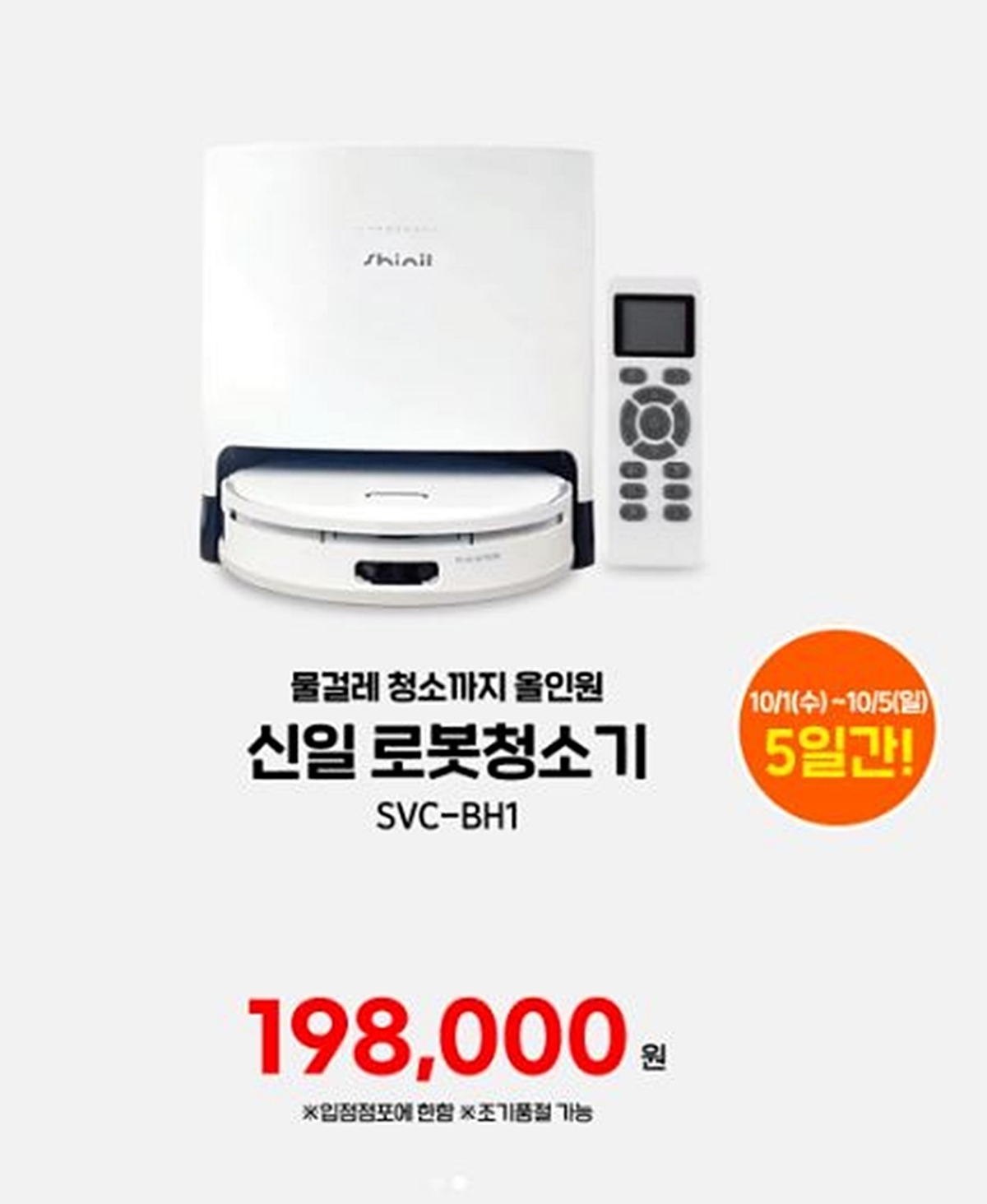 해당 제품을 만든 신일전자에 따르면 '신일 로봇청소기(SVC-BH1)'는 물걸레 청소까지 가능한 이른바 '올인원' 로봇청소기다. 전용 앱(APP)으로 편리하게 설정해 사용할 수 있다. 청소 후 스테이션에서 자동으로 물걸레 세척 및 청소기 내 먼지 비움이 가능하다. 제품 무게는 4.5kg이다.