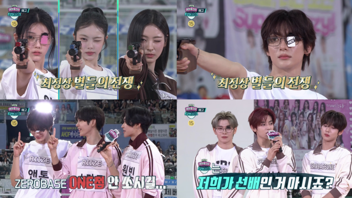 권총사격 부문에서는 제로베이스원, 라이즈, 아일릿, 하츠투하츠가 맞붙어 날카로운 신경전을 벌였으며, 라이즈의 원빈이 “제로베이스원(ONE=1)점 안 쏘시길”이라고 도발하자, 제로베이스원 장하오가 “아육대는 저희가 선배인 거 아시죠?”라고 응수해 분위기를 달궜다.