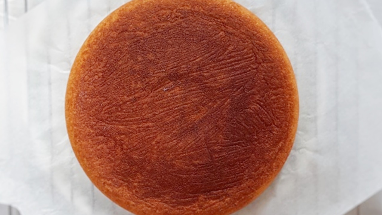 이제 접시를 대고 거꾸로 빼주세요. 카스테라가 완성 된 후엔 바로 드시는 것이 아닌 식힌 후 드셔야 더욱 맛있어요. 이때 접시에 두면 물기가 생기기 때문에 구멍이 숭숭 뚫린 채를 이용해 식히는 것이 좋답니다.