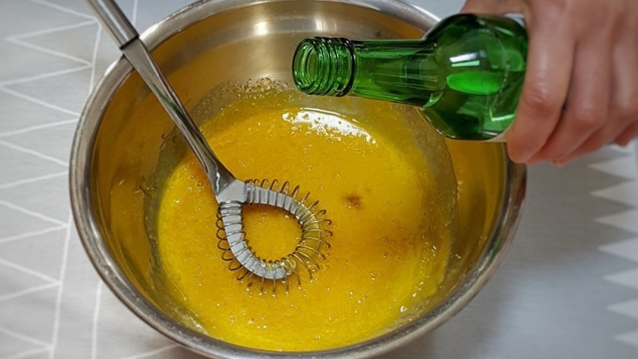 반죽이 모두 완성되었다면, 우유와 식물성기름을 넣고 다시 섞으세요.