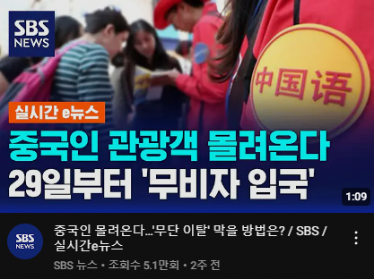 한국 무비자 입국 시행 전 중국인 뉴스 근황