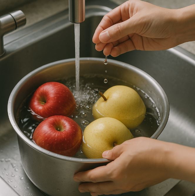 과일을 식초물에 담가 세척하면 농약이나 세균을 제거할 수 있다는 이야기가 많다. 그러나 전문가들은 식초가 모든 농약을 제거하지는 못한다고 지적한다. 특히 수용성 농약은 물에 잘 씻기지만, 일부 지용성 농약이나 표면에 강하게 달라붙은 잔류물은 식초로 세척해도 제거 효과가 미미하다. 식초 세척은 신선도를 살리고 표면의 일부 세균을 줄이는 데 도움은 되지만, ‘완벽한 세정’ 방법으로 의존하기에는 한계가 있다는 것이다.