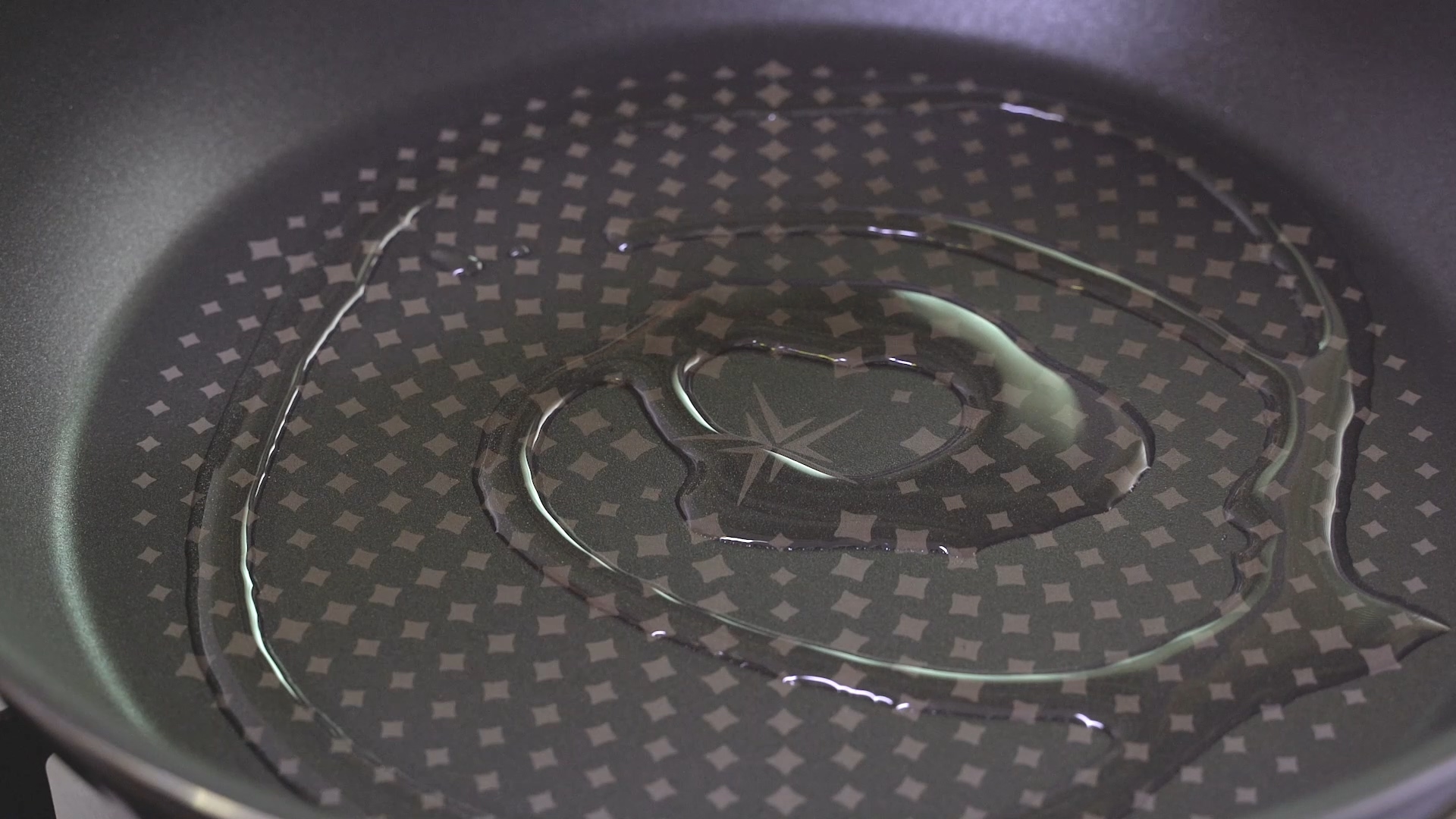 두툼한 후라이팬을 준비하세요. 그리고 식용유를 넉넉하게 둘러 줍니다. 두툼한 후라이팬에서 부쳐야 타지 않고 노릇노릇 맛있게 부칠 수 있어요.