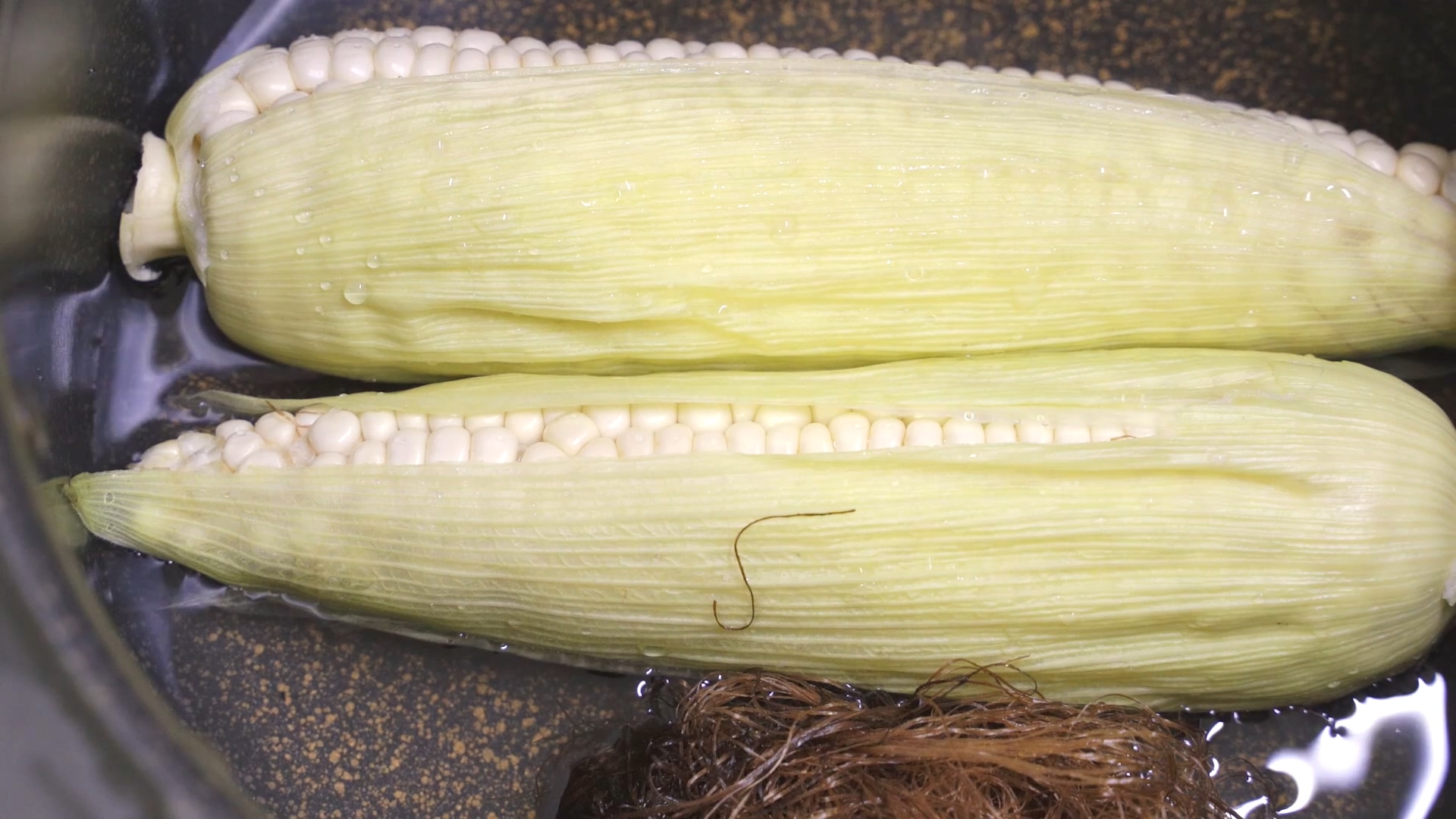떼어낸 옥수수 수염과 옥수수는 물에 한번 깨끗이 씻어 놓으세요.