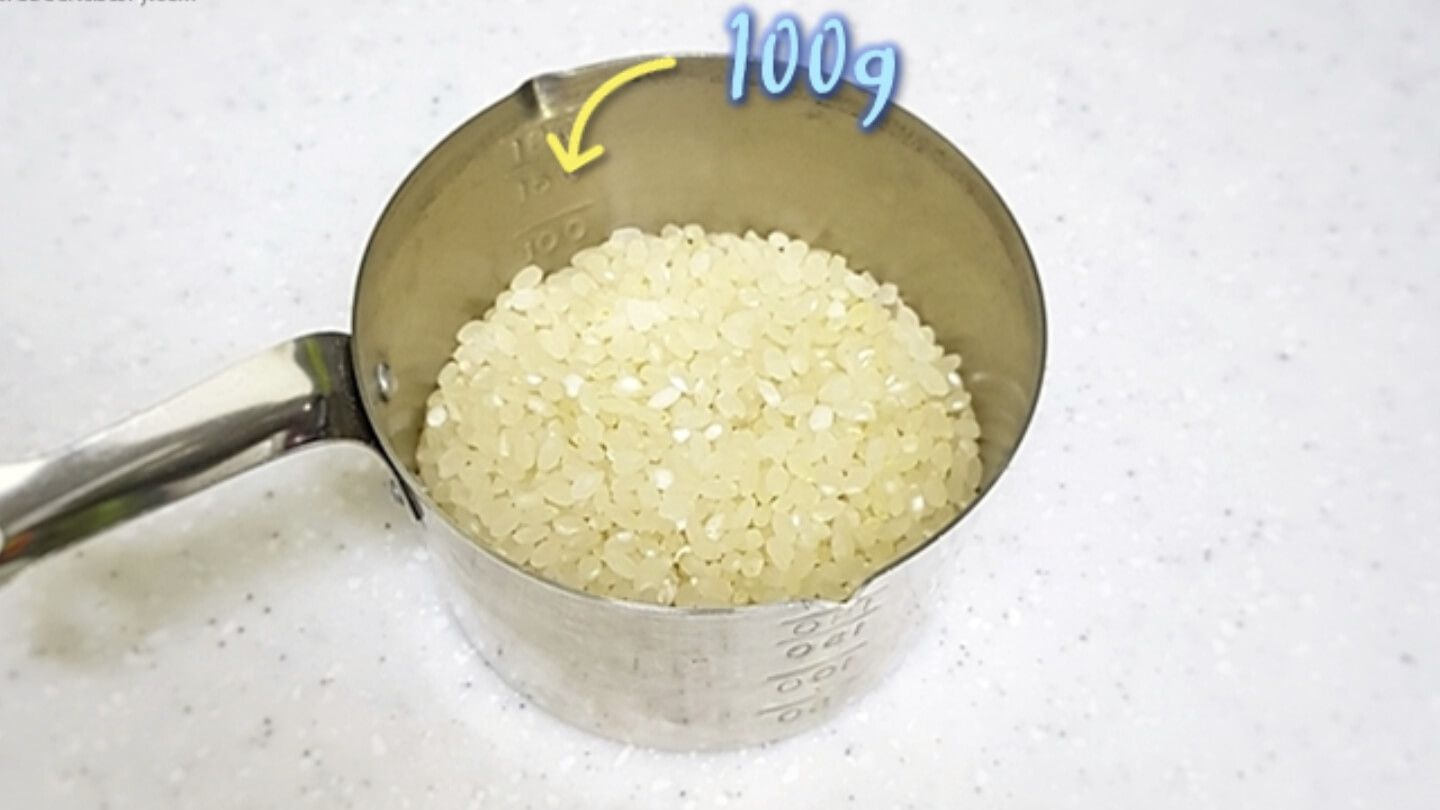 만약 저울이 없는 분이라면 일반 종이컵 기준으로 약 2/3 지점까지 쌀을 넣어 주세요. 그러면 약 100g 정도의 무게가 나온답니다.