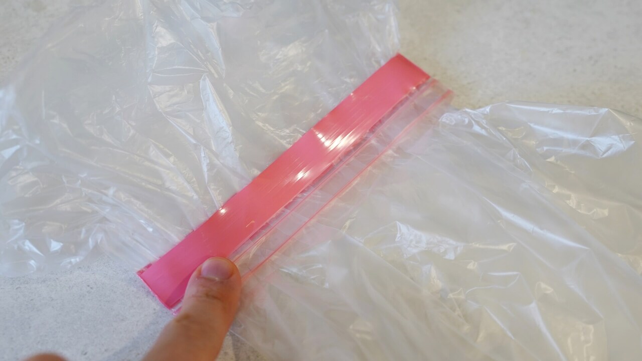지퍼백은 재료를 담기에 정말 좋은 것 중 하나에요. 그런데 재료가 지퍼보다 클 경우 넣을 수가 없는데요. 이럴땐 같은 크기의 지퍼백 2개를 준비하세요.