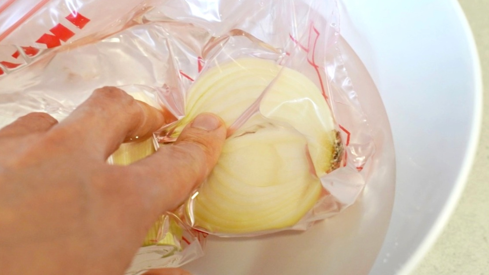 진공포장 기계 없이도 지퍼백 하나로 진공포장이 가능하다는 사실 아세요? 먼저 지퍼백에 진공포장할 재료를 담으세요. 그리고 대야에 물을 받은 후 넣어 주면 되는데요.