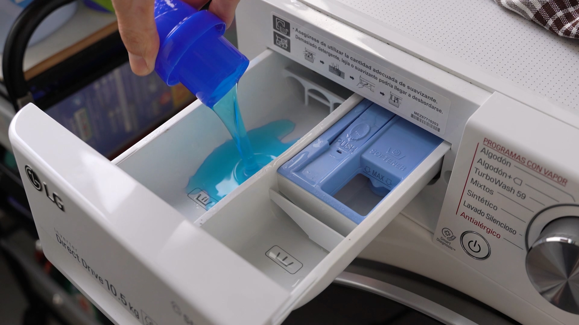 이제 세탁세제와 섬유유연제를 넣으세요. 그리고 세탁기의 섬세 코스를 이용해 세탁을 해줍니다.