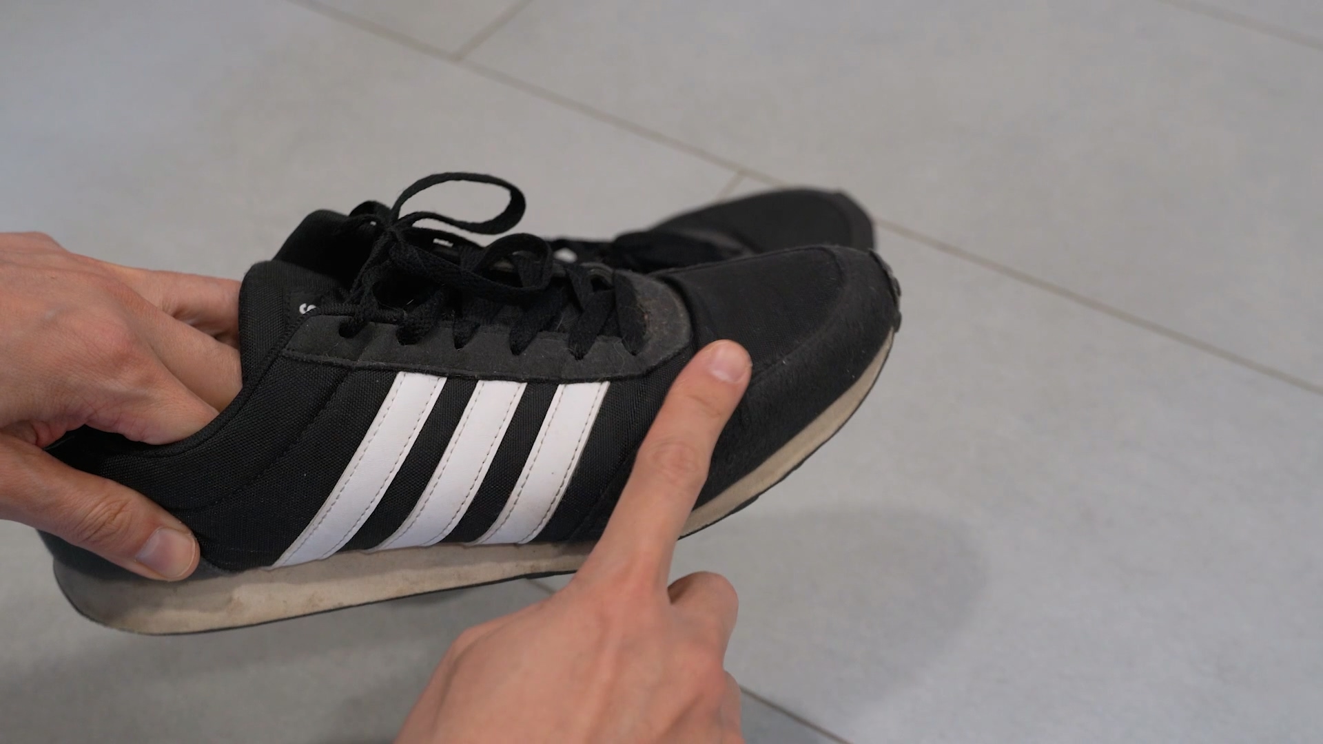 세탁이 가능한지 확인이 끝났다면 이제 신발에 뭍은 이물질을 털어줄 차례에요.