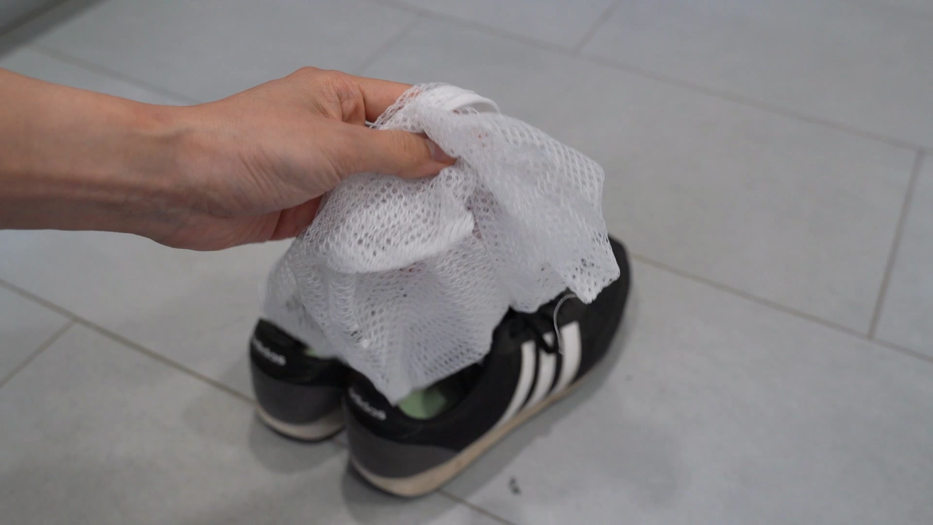 준비가 완료 되면 세탁망을 준비해 신발을 잘 넣어 주세요. 세탁망에 넣고 돌려야 신발의 외피 손상을 막을 수 있답니다.