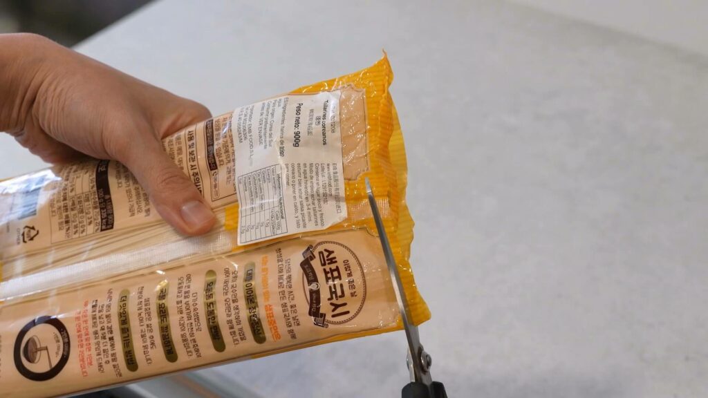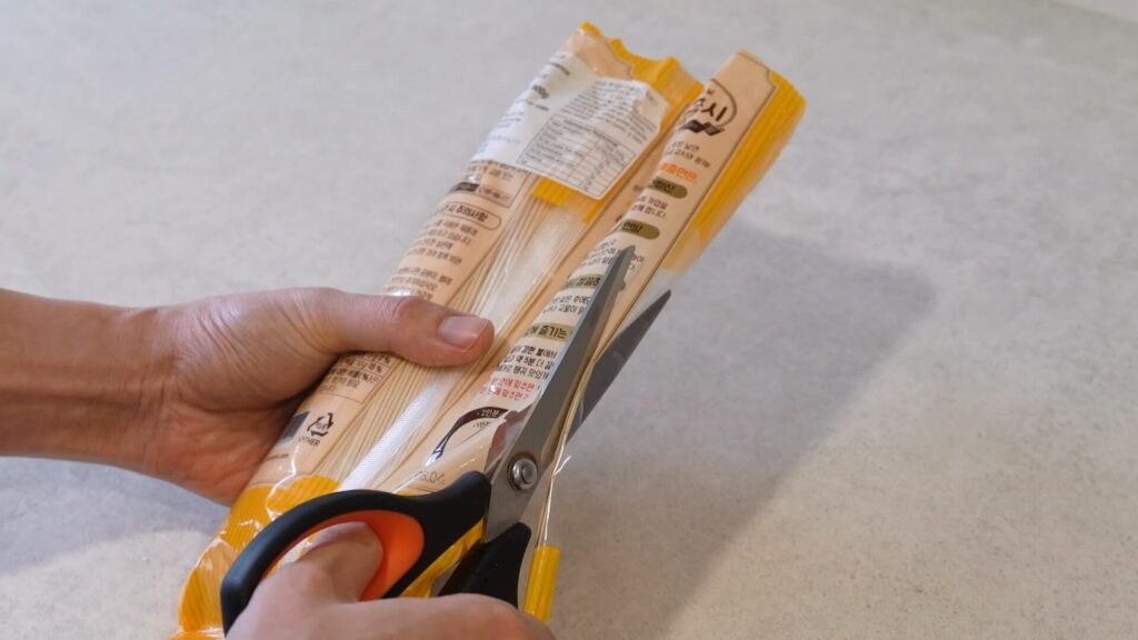 국수 봉지 자를 때 윗부분을 잘라서 사용하시나요? 국수 특성상 길이가 길기 때문에 윗부분을 자르면 불편한 부분이 많은데요. 특히 국수를 빼거나 다시 밀봉할 때 정말 불편한 것 같아요.