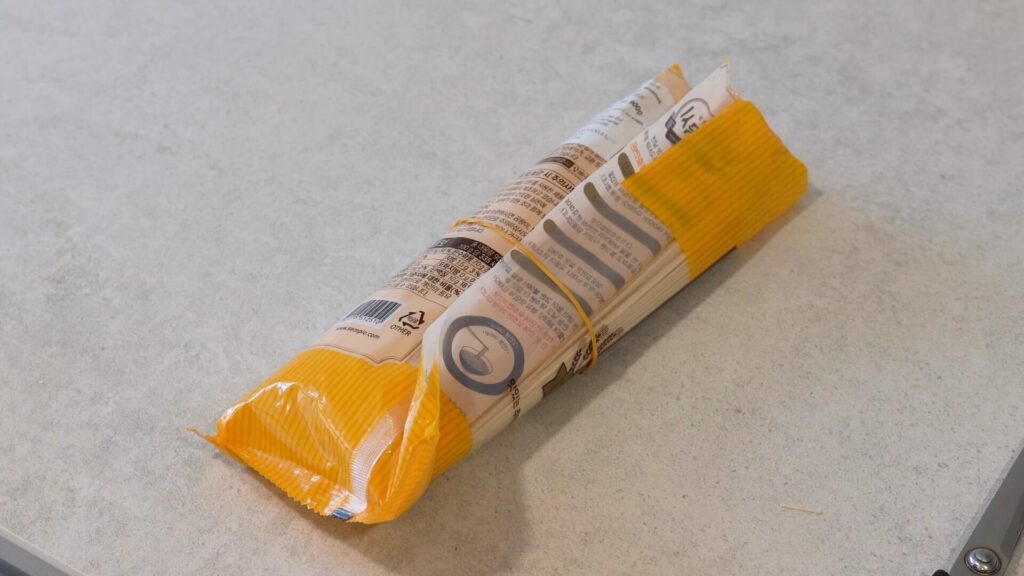 이제는 국수 봉지 윗부분이 아닌 옆 부분을 잘라서 사용하세요. 그러면 훨씬 더! 편해져요.