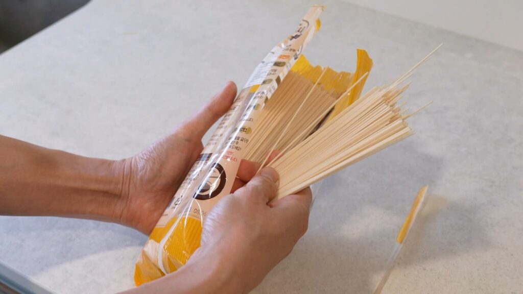 옆으로 자르게 되면 공간이 넓어져 국수를 빼기에 정말 편해요.