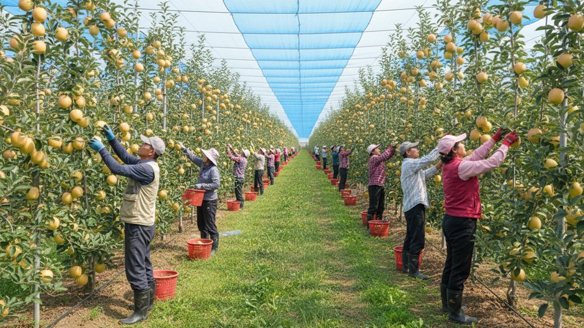 충북 영동군은 추풍령면 신안리에서 과수 농가를 운영하는 김기연(65) 씨가 지난 27일부터 28일까지 이틀에 걸쳐 시나노골드 7톤을 수확했다고 30일 발표했다. 1000평 규모 과수원에서 나온 물량이다.