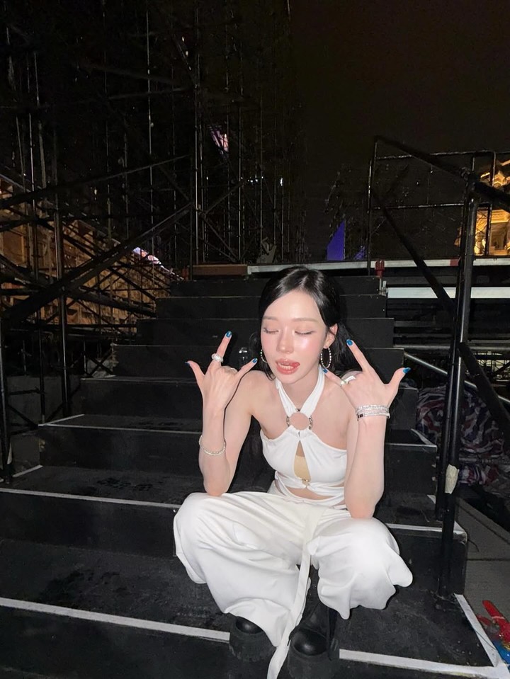 공개된 사진에서 윈터는 화이트 컬러의 홀터넥 크롭탑과 팬츠를 조합해 도도한 분위기를 자아냈다.