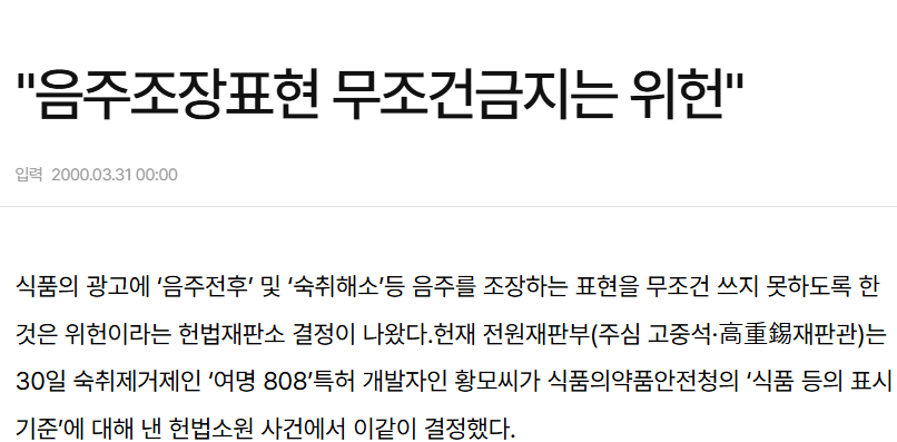 “음주전후”, “숙취해서” 문구 금지가 위헌이라고 판정받아냄