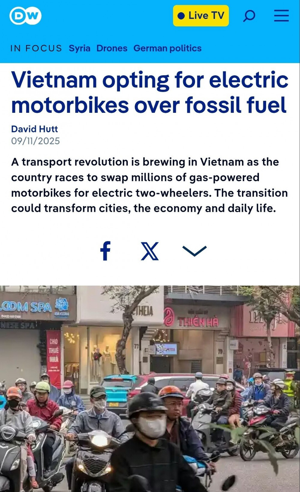 (다른 기사에서는 자국산 전기차 자동차 브랜드 빈패스트밀어주는거 아니냐는 뉘앙스도 있더라, 전기 오토바이 충전 인프라를 빈패스트가 상당수 보유하고 있다고 하면서)