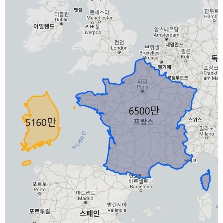 대한민국 땅 크기 실감해보기