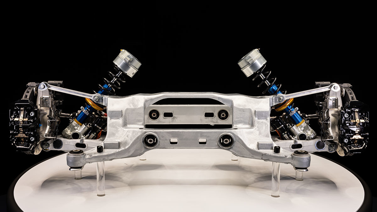 리어 서브프레임에는 페라리 최초로 탄성 구조(Elastomeric bush)가 적용돼 소음과 진동을 줄이면서도 강성은 유지한다. 구조적으로는 배터리·서스펜션·액슬을 하나의 통합 하중 구조로 묶어 강성을 높였다. 결과적으로 리어 서스펜션 시스템은 소음 감소와 역동성을 동시에 달성했다.