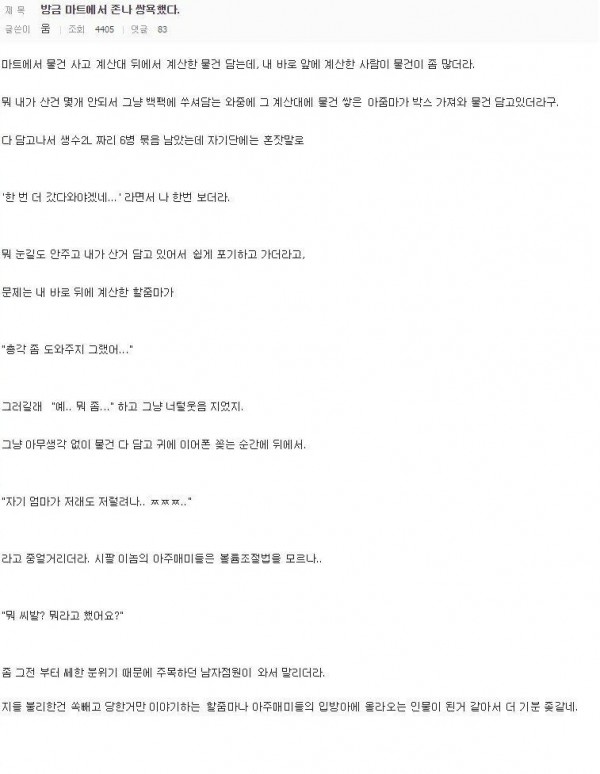 방금 마트에서 ㅈㄴ 쌍욕했다