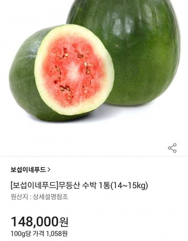 한통에 최소 10만원이라는 정신나간 가격에 거래된다는 것으로 유명한 수박이다.