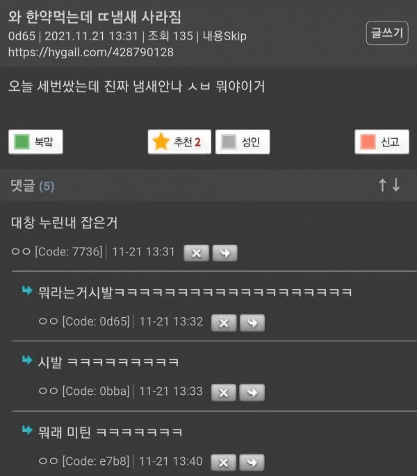 와 한약먹는데 똥냄새 사라짐