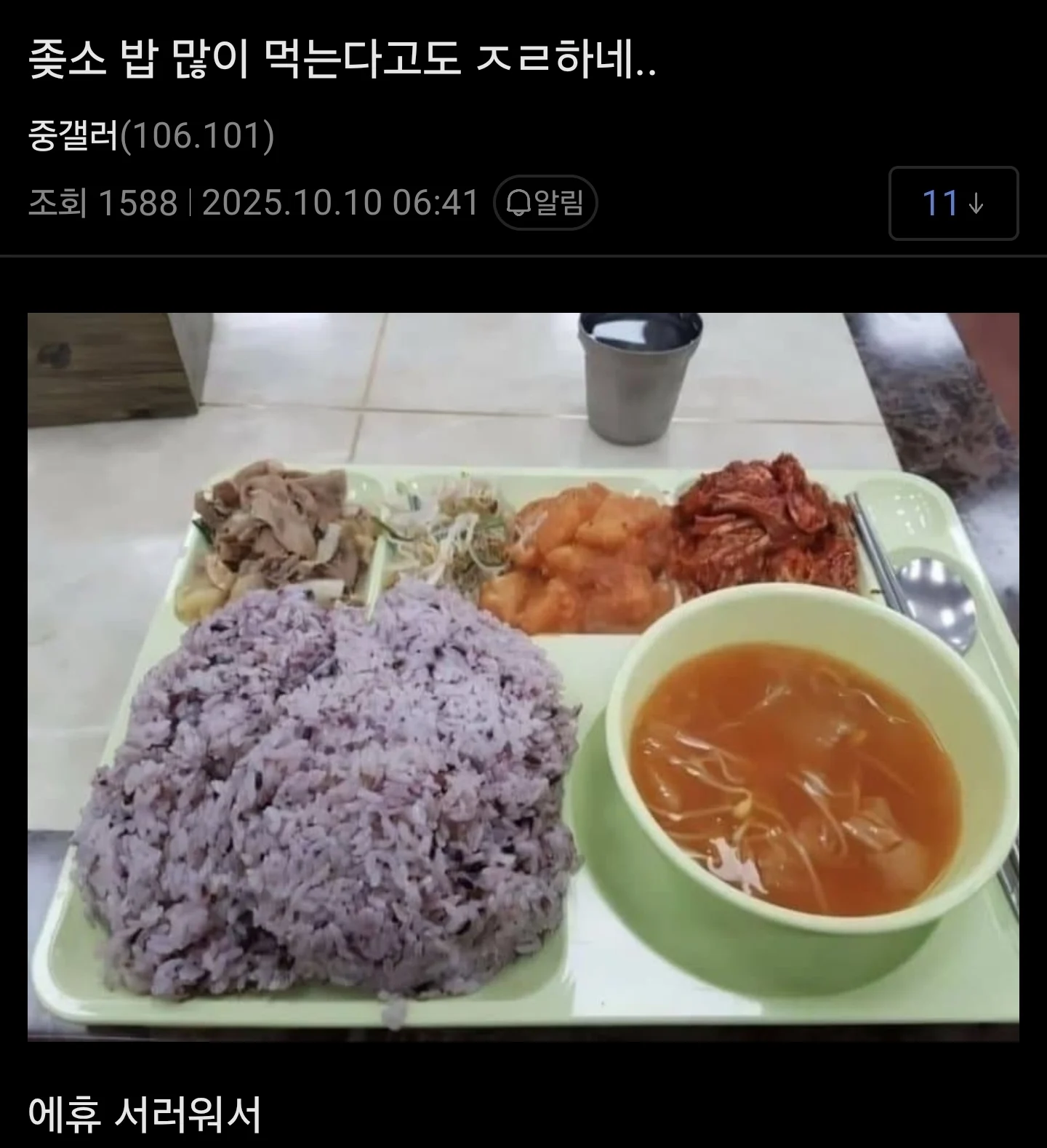 밥 많이 먹는다고 ㅈㄹ해서 서러운 ㅈ소인