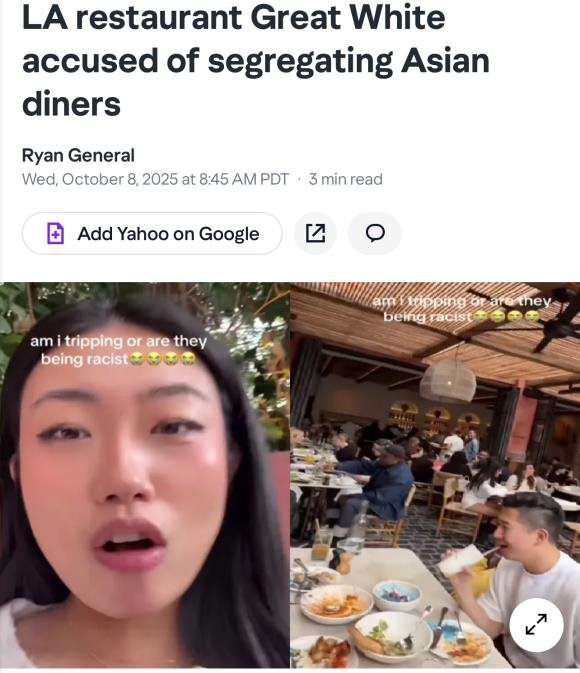 호주 출신 백인 남자들이 운영하는 Great White restaurant 맨날 동양인들만 몰아서 한 섹션에 자리를 주는게 이상해서 한 여자가 인스타에 올림. (성이 Cho인거 보니 한국인인듯?) 그 스토리를 본 여러 아시안들이 자기들도 그랬다고 리뷰 예전에 해당 식당에서 일했던 전직원 “ 식당 측에서 유색 인종은 따로 앉게 하고 받는 숫자를 제한하랬다고 증언” 결국 NBC 지역뉴스 입갤 ㅋㅋ 실제 캄보디아 납치 영상 보고옴 ㄷㄷ재미삼아 친동생 목을 도끼로 찍어 죽인 형막노동하면서 독학으로 의대 합격한 청년14살에 친동생을 도끼로 죽인형암호화폐 역사상 가장 거대한 청산이 나왔다고함