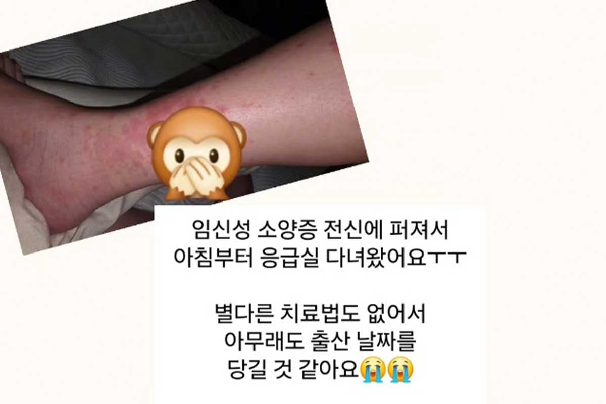 임라라는 10일 자신의 소셜 미디어를 통해 “임신성 소양증이 전신에 퍼져서 아침부터 응급실을 다녀왔다”라는 글과 함께 한 장의 사진을 공개했다.