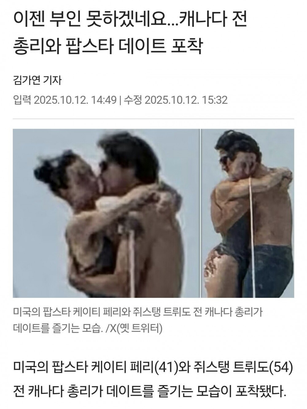 이젠 부인 못하겠네요…캐나다 전 총리와 팝스타 데이트 포착 케이티 페리와 데이트하다 들킴 더 이상 수요 없는 추억의 과일 생크림 케이크북한의 어마어마한 잠재력 ㄷㄷ'그냥 쉬었음' 청년들 근황명절때 사촌동생들 맨날 이렇게 왔는데의견이 분분한 인스타 릴스영상