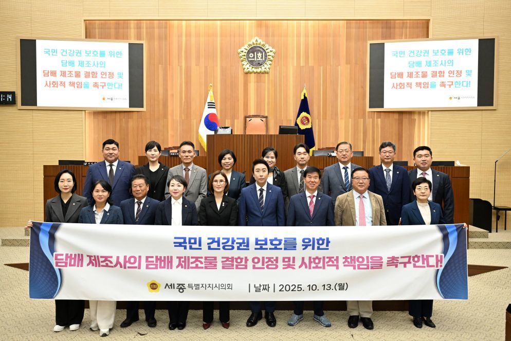 세종시의회는 13일 제101회 임시회 제1차 본회의에서 임채성 의장이 대표발의한 「담배 제조물 결함 인정 및 사회적 책임 촉구 결의안」을 채택했다. 결의안은 담배 제조사가 제품의 유해성을 고지하지 않아 ‘제조물 표시상의 중대한 결함’을 초래했다며, 이에 따른 국민 피해와 재정 손실에 대한 책임을 명확히 할 것을 요구했다.