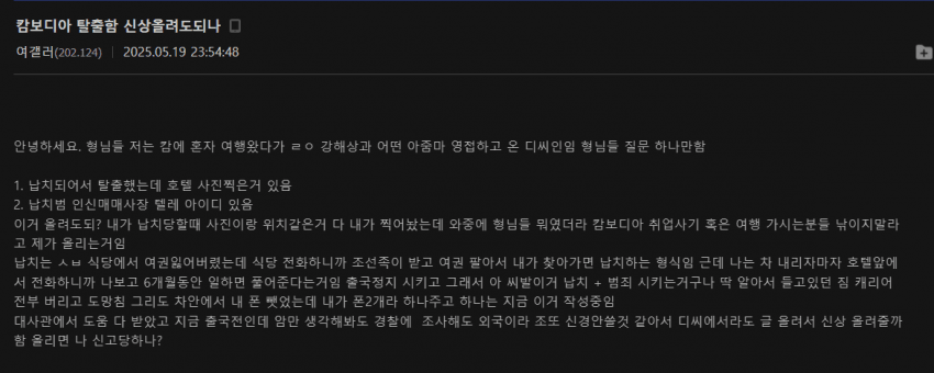 지인들 파는 이유는 관리하는 중국 조폭들이 한국인 n명이상 데려오면 풀어준다고 함... 얼굴만 보면 키 작을거 같은데 의외로 키 큰 여배우빅뱅 승리, 캄보디아 범죄조직과 결탁 의혹스포) 체인소맨 레제편 새로운 시각의 해석신곡 발표한 테일러 스위프트가 팬들한테 욕쳐먹는 이유'보플2' 한해리준→희찬까지 합류…다크비, 1년 3개월 만에 컴백