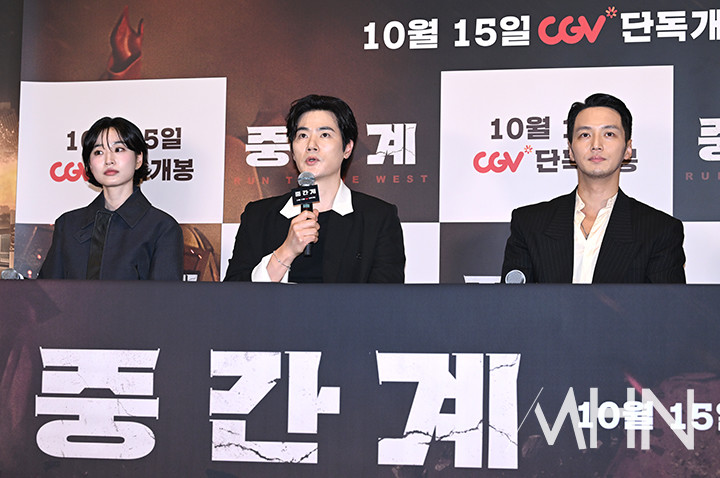 13일 서울 용산구 CGV용산아이파크몰에서 열린 ‘중간계’ 언론배급시사회 및 기자간담회에는 강윤성 감독, 변요한, 김강우, 방효린, 임형준이 참석했다.