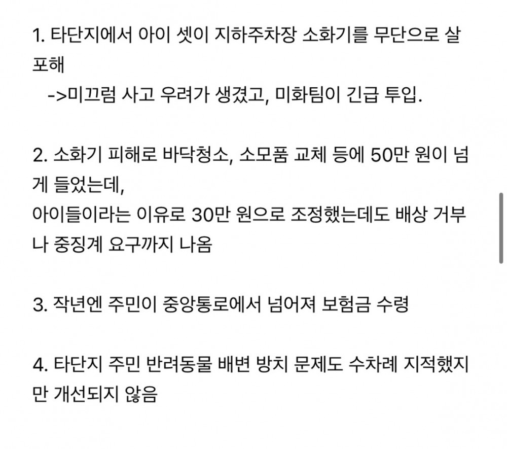 사고친 학생 부모들이 본인 아파트에 사과문 올림 현재도 싸움중 과태료 내고 펜스 설치하겠다 vs 공공 개방하기로 약속했으니 열어라 요즘 남자들 여자 만나기 ㅈㄴ 힘든 게 맞는 듯대한민국에서 성인 남성들에게 모이라고 했을 때니 여친 굉장하더라죽고싶진 않은데 살기가 싫다갈수록 심해지고 있다는 육아 아웃소싱 현상
