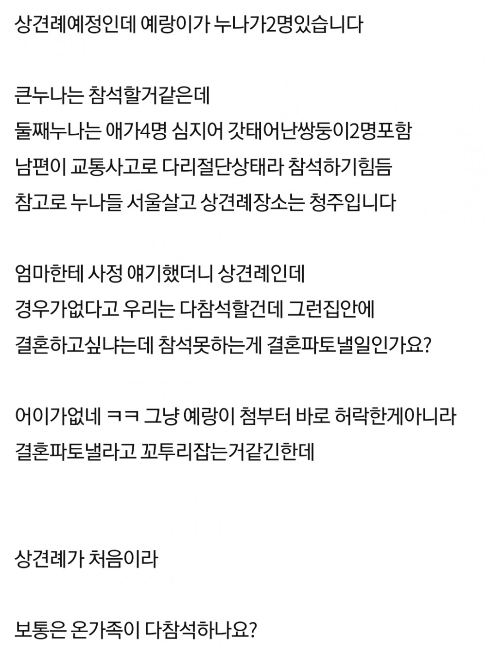 상견례때 예랑 시누이 불참