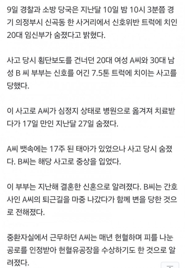 지난달 발생한 안타까운 신혼부부 사망 사고 사건