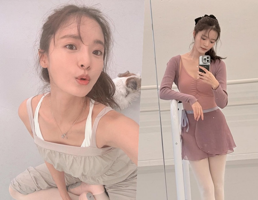 공개된 사진 속 고보결은 로즈빛 바디슈트와 시폰 랩 스커트, 리브 니트 볼레로를 매치해 부드러운 파스텔 톤의 발레웨어 룩을 선보였다. 머리를 높이 묶고 블랙 리본으로 포인트를 준 스타일링은 단아하면서도 여성스러운 분위기를 극대화했다.