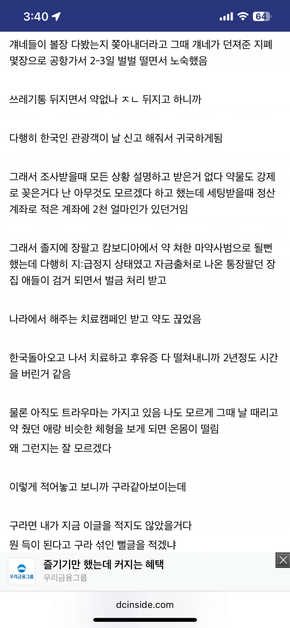 캄보디아 논란 터지기 전인 9월에 돌던 글 살았는데 영구장애 + 마약중독자 타이틀 얻음 수십년간 해결하지 못했던 천문학자들의 미스터리제2의 캄보디아를 만들고 있는 중국윈도우10 계속 쓰고 싶은 사람들 필독대포통장 전달책의 캄보디아 생환 후기제주도 축제 김밥 퀄리티 수준