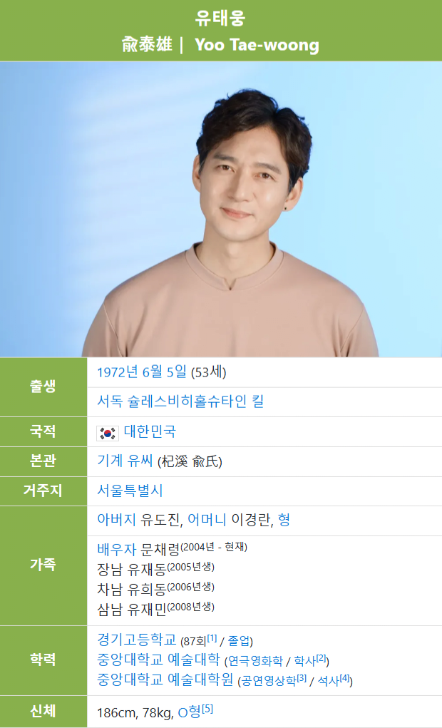 야인시대 에서 유지광 역활을 맡은걸로 유명한 배우 유태웅... 이 아저씨 한테 고등학교에서 대학교 까지 야구 선수로 활동중인 2006년생 둘째 아들이 있는데 고딩때는 키 195~6cm 였다가 고려대 입학 후 에는 결국 197cm 됨 197cm 에 훈훈하게 생겨서 고대 야구 팬들한테 인기 많다고 유럽 백인들과 외모가 비슷한 아프가니스탄인들그것이 알고싶다 방영후 골때리는 캄보디아 근황스포) 체인소맨 레제편에서 사람들의 궁금증 해소제주 성산일출봉에서 마약 66만인분 발견속보) 토허제 서울 전지역 + 경기도 12곳 확대