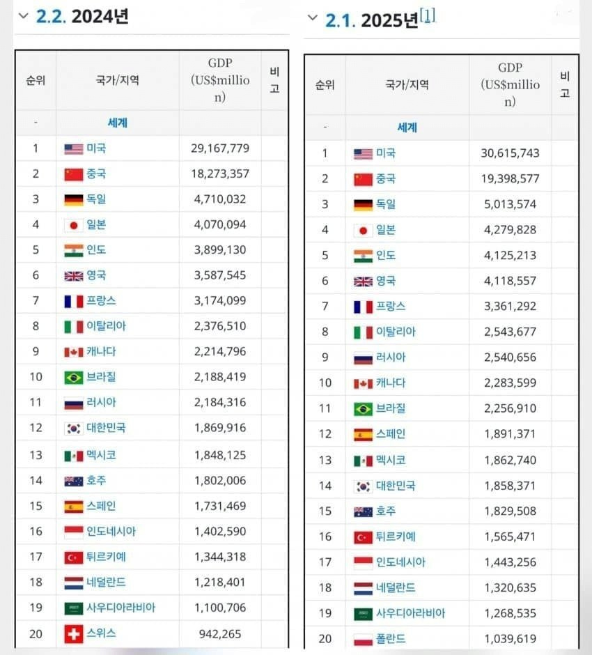 스페인이랑 멕시코에게 추월당하며 14위로 내려간 대한민국 유로랑 파운드의 엄청난 절상으로 유럽과 영국 gdp의 어마어마한 뻥튀기 튀르키예랑 인도네시아 인도는 환율 극심한 저평가임에도 상승장 갈때까지 가버린 엽떡 꿀조합 근황반포 100억 넘는 아파트 테라스 풍경오싹오싹 올해 3월 올라왔던 캄보디아 범죄단지 썰서부간선지하도로 사고 대참사 ㄷㄷ말차하임 ,말차쿠크다스 실물