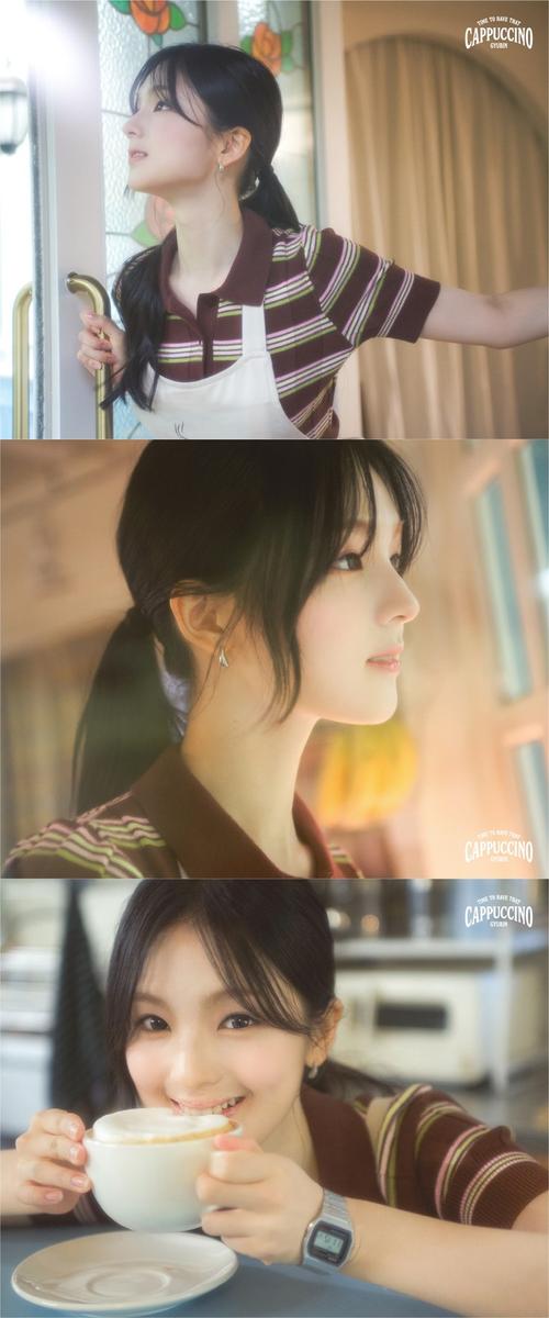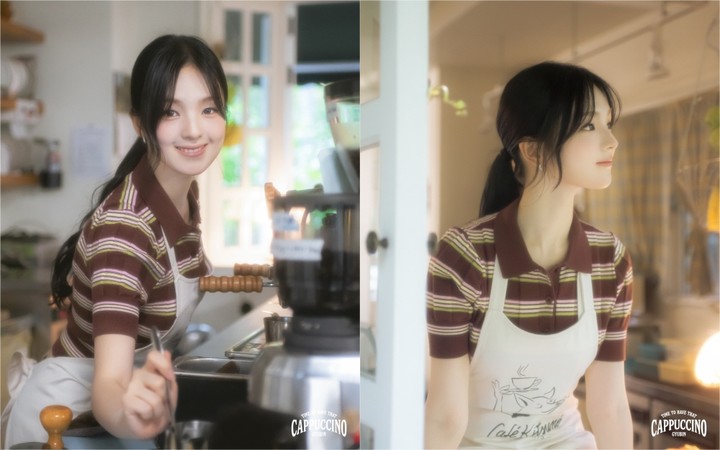 카푸치노를 손에 들고 웃는 순간은 사랑스럽고 활기찬 아르바이트생으로 완벽히 변신하며 신곡을 향한 팬들의 호기심을 증폭시켰다.